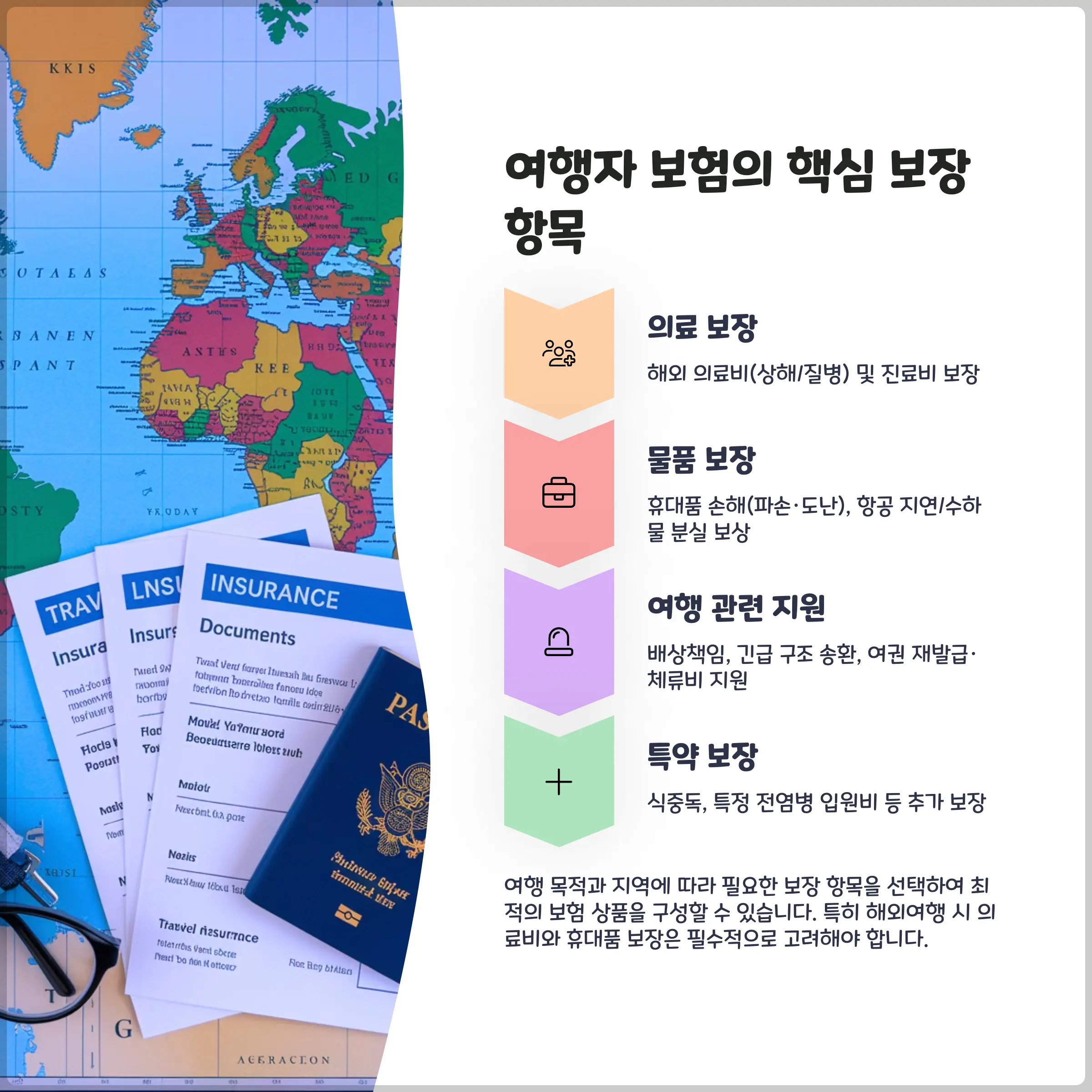 여행자 보험은 단순히 '아프면 병원비 나오는 보험'으로 생각하기 쉬워요. 하지만 실제로는 항공 지연, 수하물 손해, 심지어 법률 지원까지 다양한 항목을 포함하고 있어요. 무엇보다 중요한 건 '내 여행 목적과 스타일에 따라 필요한 보장을 선택'하는 것이에요. ✈️
