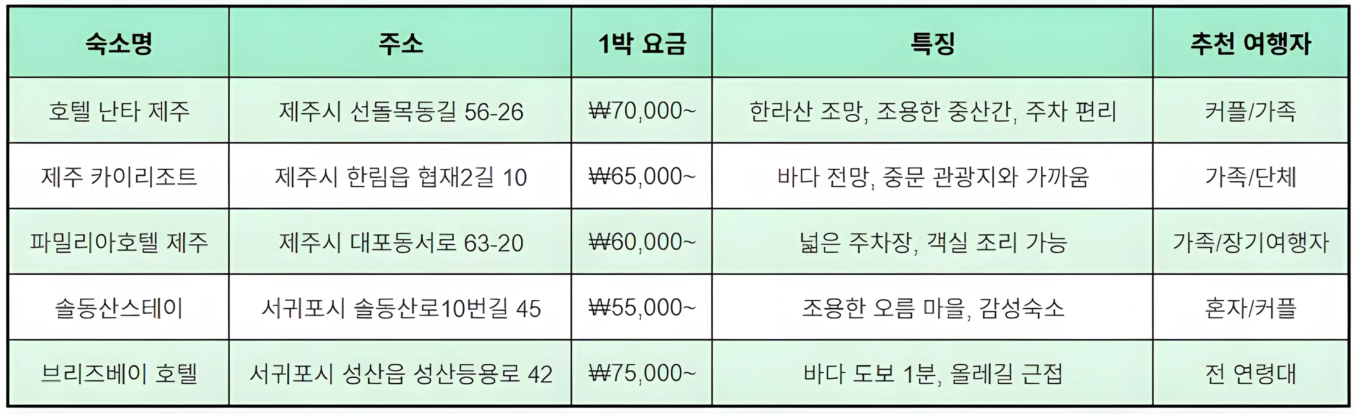 이번에는 제주도 전역에서 가성비 숙소 5곳을 골라봤어요. 각 숙소는 방문자 리뷰 검증, 평점 8.5점 이상을 받은 곳으로만 선정했고요, 위치/가격/청결도/편의시설까지 다 꼼꼼히 따져봤어요.