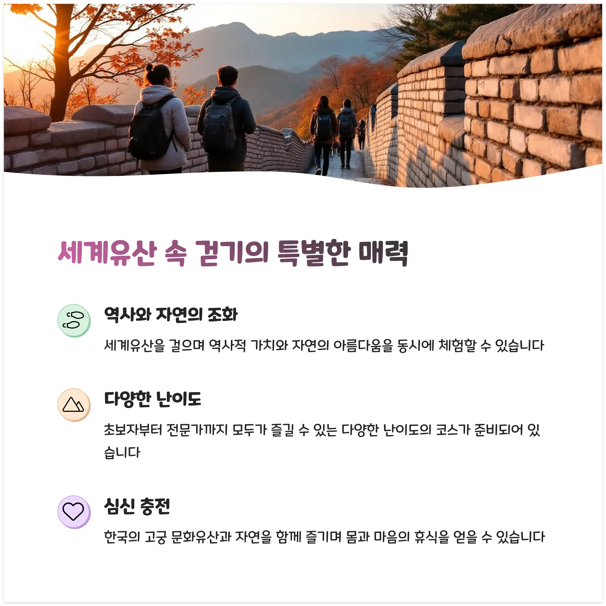 📋 세계유산 걷기의 특별한 매력 요약