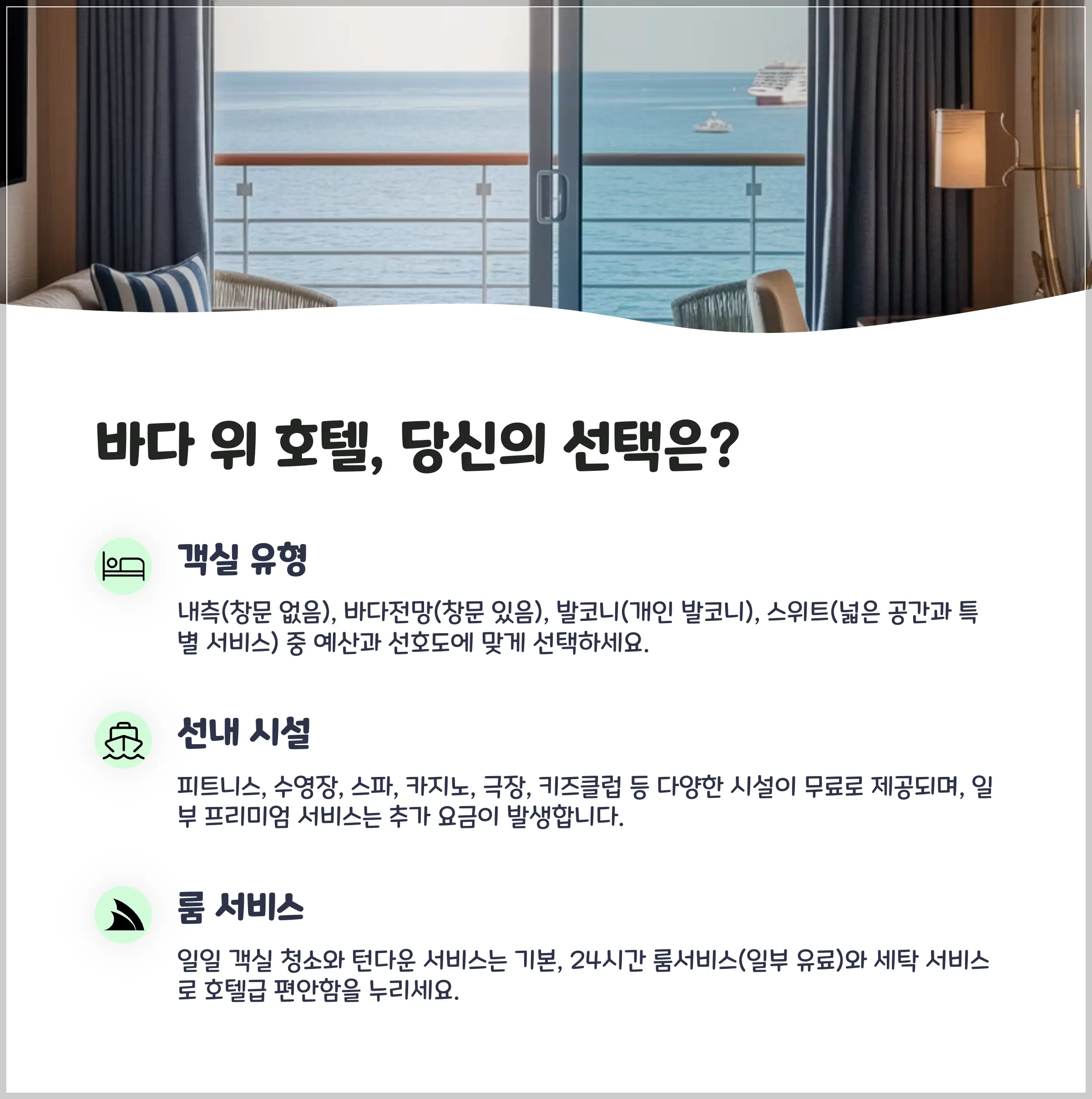 🏨 객실 종류 및 선내 시설 요약