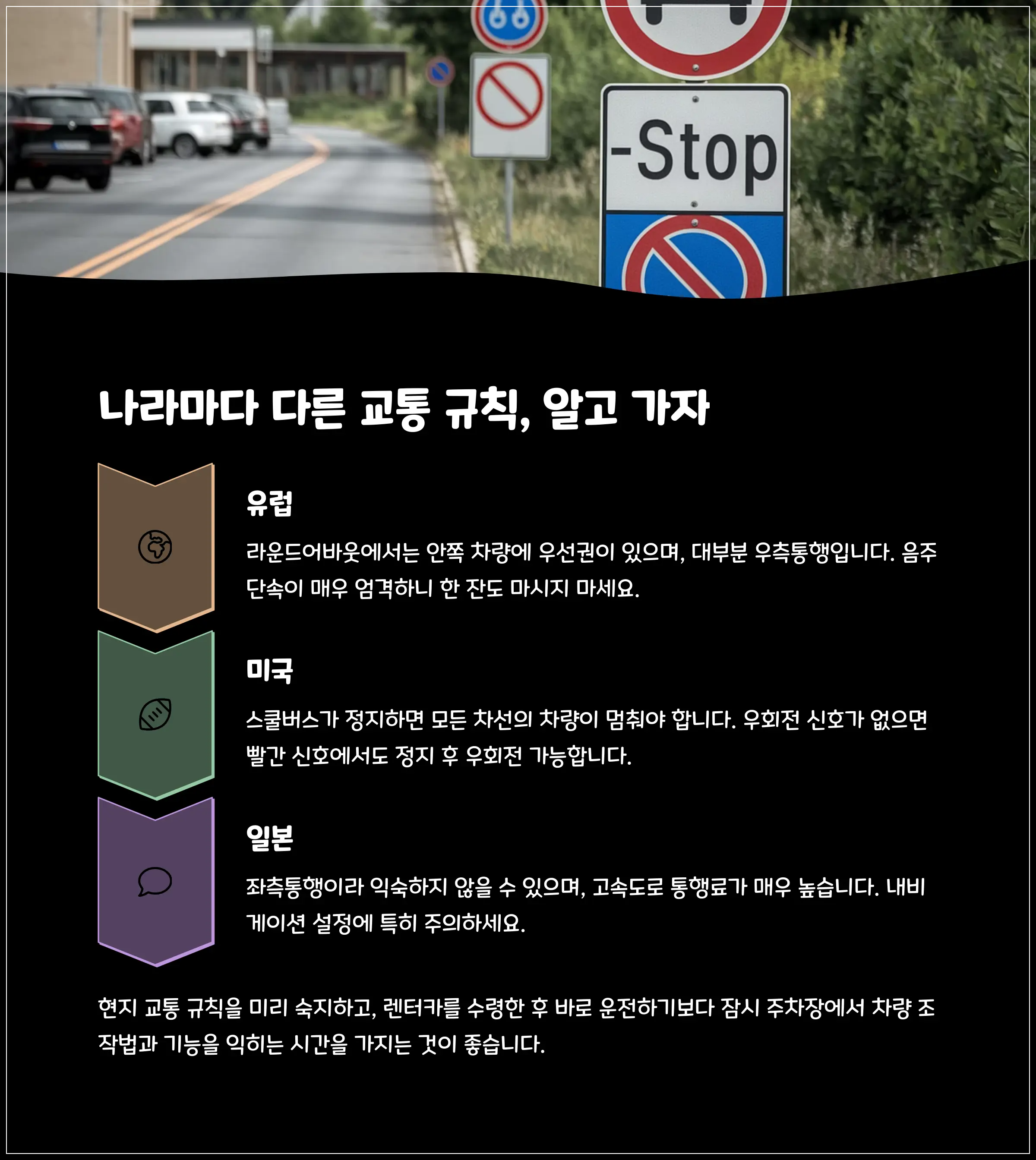 🛣️ 국가별 운전 규칙 & 팁 비교