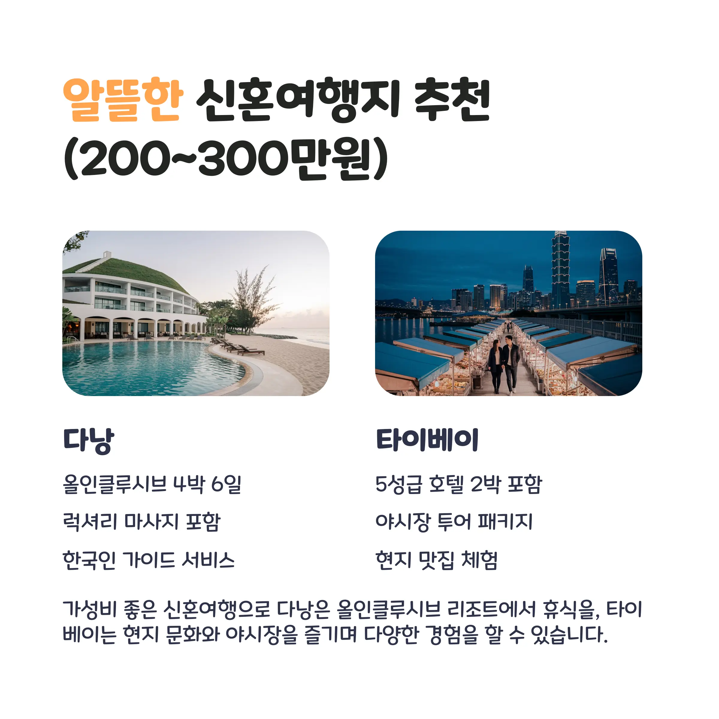 여기까지가 후회 없는 신혼여행을 위한 예산별 추천 + 일정 + 준비 팁 + FAQ 완벽 가이드였습니다!